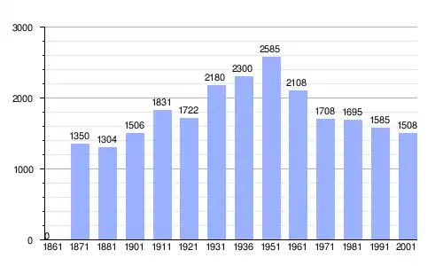 | Gráfica de evolución demográfica de Precenicco entre 1861 y 2001 |