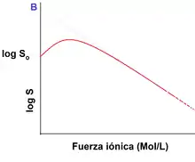 Donde S es la solubilidad; B es la solubilidad "ideal", K una constante característica del sistema sal-macromolécula e I la fuerza iónica.