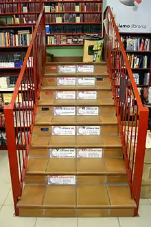 ![]() Librería Cálamo. Escalera con el nombre de los premiados. | ||