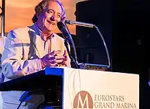 ![]() Luis Pancorbo recibiendo el Premio Eurostars de Narrativa de Viajes en el año 2015 | ||