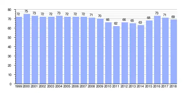 | Gráfica de evolución demográfica de Presedo (localidad) entre 1999 y 2018 |