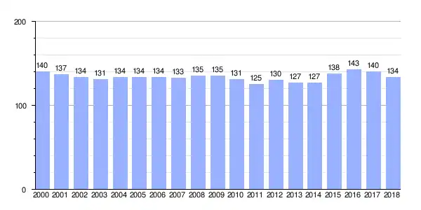 | Gráfica de evolución demográfica de Presedo (parroquia) entre 2000 y 2018 |