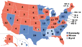 En última instancia, la carga de la guerra de Corea, la amenaza comunista y los escándalos de la administración Truman, así como la popularidad de Eisenhower, fueron demasiado para Stevenson.[20] Eisenhower obtuvo una victoria aplastante, obteniendo el 55.2 por ciento del voto popular y 442 votos electorales. Stevenson recibió el 44.5 por ciento del voto popular y 89 votos electorales. Eisenhower ganó todos los estados fuera del Sur, así como Virginia, Florida y Texas, cada uno de los cuales votó republicano por segunda vez desde el final de la Reconstrucción . En las elecciones concurrentes en el Congreso, los republicanos obtuvieron el control de la Cámara de Representantes y el Senado.[21]