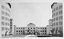 Estaba conformada por cuatro edificios de planta circular de cinco pisos y 93 cabinas con 2 camas en cada uno. En el centro de cada edificio se encontraba una torre para los guardias de vigilancia armados con ametralladoras que las utilizaban para apagar cualquier desorden que pudiera suceder, las fuerzas del orden no entraban al interior de las celdas por la carencia de barrotes entre ellas. Dos edificios sirvieron en la Segunda Guerra Mundial para encerrar a prisioneros alemanes y japoneses. Había un quinto edificio para el comedor que podía atender de una vez a 3.000 personas. El proyecto original consistía de 9 edificios (uno para comedor), pero en 1932 no se construyó más por falta de presupuesto.[1] Había un hospital con dos pabellones.