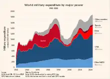 La base de datos de gastos militares de SIPRI 2017 estimó el gasto militar de Rusia en 2016 en 69.200 millones de dólares estadounidenses.[27] Esta estimación es aproximadamente el doble de la estimación del SIPRI del presupuesto militar ruso para 2006 (34.500 millones de dólares estadounidenses).