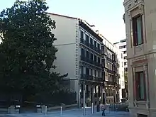 La primera de las cinco manzanas de este Primer Ensanche, se perdió en medio de la especulación de la segunda mitad del siglo XX y hoy está dividida en dos formadas por edificios modernos.