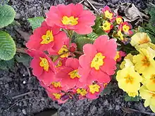 Las prímulas (Primula spp.), también conocidas como primaveras o primaveras de jardín (por ser la primera en florecer), es un género de plantas de la familia de las primuláceas. Es una planta perenne de crecimiento bajo con alrededor de 500 especies. Muchas de las especies de este género se dan espontáneamente en todo el hemisferio norte. No ha de confundirse con la onagra (Oenothera biennis).