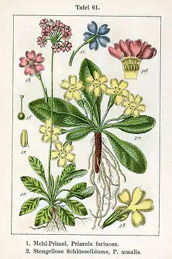 Primula farinosa es una especie perteneciente a la familia de las primuláceas nativa del norte de Europa y el norte de Asia, y (rara vez) hacia el sur a gran altura en las montañas del sur de Europa.
