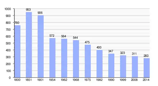 | Gráfica de evolución demográfica de Prinsuéjols-Malbouzon entre 1800 y 2014 |
