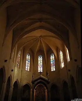 Es de estilo gótico tardío formado por una nave única de proporciones esbeltas, con seis tramos y capillas laterales entre los contrafuertes. El ábside es poligonal de siete caras y con capillas radiales, cubierto con bóveda de crucería gallonada en ocho nervios.
