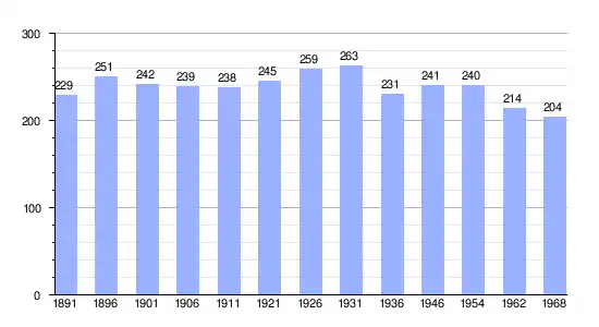 | Gráfica de evolución demográfica de Prissé entre 1891 y 1968 |