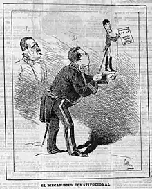 En junio de 1872 el rey Amadeo I encargó la formación de gobierno al líder del Partido Demócrata-Radical Manuel Ruiz Zorrilla,[10][11] pero este puso como condición la disolución de las Cortes y la convocatoria de nuevas elecciones, a pesar de que las últimas se habían celebrado hacía solo dos meses —lo que podía contravenir el artículo 43 de la Constitución española de 1869 que establecía que «las Cortes estarán reunidas a lo menos cuatro meses cada año»—.[12] El rey aceptó y los conservadores del Partido Constitucional, el otro gran partido de la Monarquía de Amadeo I, reaccionaron denunciando «el golpe de Estado inaudito y desvergonzado» que, según ellos, se había producido.[13]