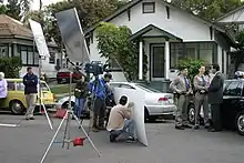 - Una producción de escala más grande con una tripulación de 5 o más personas y un tráiler o camión de producción