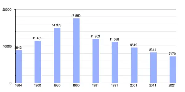 | Gráfica de evolución demográfica de Proença-a-Nova entre 1864 y 2021 |