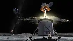 - En octubre de 2019, se infomó que las empresas Blue Origin, Lockheed Martin, Northrop Grumman y Draper Laboratory colaborarán conjuntamente para crear una propuesta de un 'Sistema de aterrizaje tripulado'.[78] Blue Origin sería el contratista principal con su Blue Moon Lunar Lander como etapa de descenso. Lockheed Martin construiría la etapa de ascenso. Northrop Grumman construiría una etapa de transferencia basada en su nave espacial Cygnus. El módulo de aterrizaje se lanzaría en el cohete reutilizable New Glenn de Blue Origin.[71]