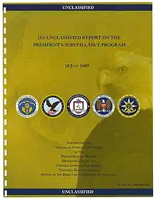 - Oficinas de los inspectores generales del DoD, DoJ, CIA, NSA y ODNI (10 de julio de 2009). «Unclassified Report on the President's Surveillance Program» [Informe no clasificado sobre el Programa de Vigilancia del Presidente] (PDF). Federación de Científicos Estadounidenses | Programa de Recursos de Inteligencia (en inglés). VIII. CONCLUSION. Archivado desde el original el 30 de diciembre de 2022. Consultado el 30 de marzo de 2023. «Finally, the collection activities pursued under the PSP, and under FISA following the PSP's transition to that authority, involved unprecedented collection activities. We believe the retention and use by IC organizations of information collected under the PSP and FISA should be carefully monitored.»