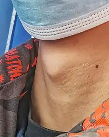 La estructura de la prominencia laríngea conforma un relieve por debajo de la piel que es más grande en los hombres adultos, en quienes es claramente visible y palpable.[2][3][4]