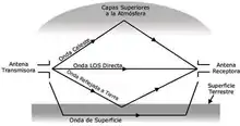 La Tierra perturba la propagación de las ondas electromagnéticas, de forma que al establecer cualquier tipo de radiocomunicación en el entorno terrestre aparecerán una serie de fenómenos que modificarán las condiciones ideales de propagación en el vacío. Estos fenómenos son básicamente tres: onda de superficie, difracción, y formación de la onda de espacio.[4]