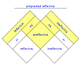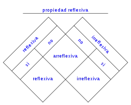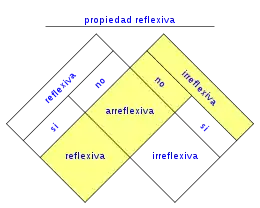 En una relación binaria homogénea la reflexividad determina la posible relación de un elemento con sigo mismo, en todos los casos, nunca o a veces.