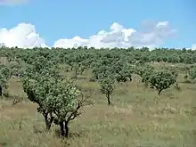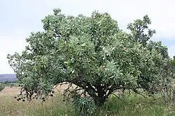 P. caffra es una especie excepcionalmente variable, y parece estar compuesta de un mosaico de razas que exhiben pequeñas diferencias, usualmente en el tamaño, color , textura y forma de las hojas. Donde los inviernos son fríos y secos la planta tiene hojas rígidas, gruesas y verde pálidas, mientras la distribución se mueve hacia el oeste las hojas se haces más grandes, suaves y más flexibles. Las flores son generalmente rojas-rosáceas a carmín con verde en la base, y se producen durante un período claramente definido de 6 - 8 semanas; este período puede empezar tan temprano como octubre en las regiones costeras, y tan tarde como diciembre en las regiones elevadas. Las cabezas florales producen un olor dulce, ligeramente sulfuroso que atrae a los insectos escarabeidos en grandes números. La corteza densa y agrietada provee a los árboles con una gran medida de resistencia al fuego.
