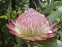 Protea: nombre genérico que fue creado en 1735 por Carlos Linneo en honor al dios de la mitología griega Proteo que podía cambiar de forma a voluntad, dado que las proteas tienen muchas formas diferentes.