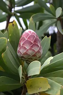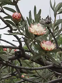 Por primera vez descubierta en Natal, Sudáfrica en diciembre/enero de 1839/40 por Ferdinand Krauss, esta protea nunca ha llamada mucho la atención de los horticultores. Se le indujo a florecer en Kew en mayo de 1893, pero falló en despertar un interés posterior en la especie. Su principal pretensión a la fama es que fue ilustrada al reverso de la moneda de tres peniques - o 'tickey' – por casi 30 años. La corteza puede ser usada medicinalmente.