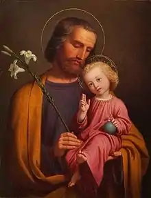 - por su patrocinio y mediación de la Iglesia (título reconocido siglos después por el Papa Pío IX ), a favor de las familias cristianas, los trabajadores, los moribundos y los que aspiran a la perfección.[3]