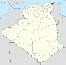 ![]() Mapa de Argelia, resaltada la provincia de El Tarf. | ||