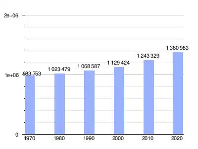 | Gráfica de evolución demográfica de Provincia de Escania entre 1970 y 2020 |