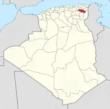 ![]() Mapa de Argelia, resaltada la provincia de Oum el-Bouaghi. | ||