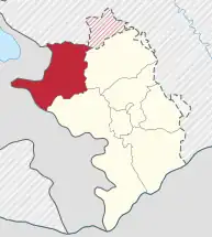 La parte occidental de la provincia estaba controlada por Artsaj, mientras que la parte norte, originalmente el distrito de Shahumián de la República Socialista Soviética de Azerbaiyán, ahora parte del raión de Goranboy, permaneció bajo el control de Azerbaiyán, que fue reclamado por Artsaj. El distrito de Shahumián estaba ubicado fuera del antiguo Óblast Autónomo del Alto Karabaj; sin embargo, antes de la Primera Guerra del Alto Karabaj, su población era mayoritariamente armenia, que fue expulsada durante la Operación Anillo en 1991. Si bien la región de Shahumián no formaba parte del Óblast Autónomo del Alto Karabaj, representantes de Shahumián declararon su independencia junto con el óblast y la proclamación de Artsaj incluyó la región de Shahumián dentro de sus fronteras.[1]