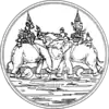 El sello provincial muestra la batalla en elefante entre el rey Naresuan el Grande y el príncipe heredero de Birmania en 1592, que tuvo lugar en Suphanburi.