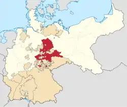 Provincia de Hesse-Nassau (constituida a partir de la Ciudad Libre de Fráncfort del Meno, el Electorado de Hesse, y el Ducado de Nassau, anexado en 1866).
