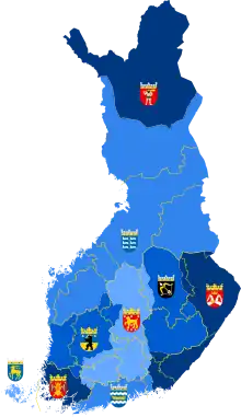 Los escudos de armas de las provincias históricas han servido como modelo para los escudos de armas de las divisiones administrativas actuales, las regiones de Finlandia.