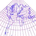 El resultado es un mapa semicircular en el que los meridianos son líneas rectas dispuestas radialmente y los paralelos arcos de círculos concéntricos. La escala aumenta a medida que nos alejamos del paralelo de contacto entre el cono y la esfera.