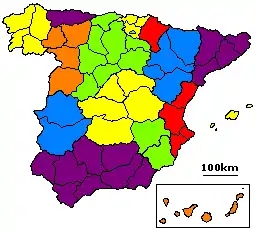 - Valencia: Castellón, Cuenca, Teruel, Valencia.