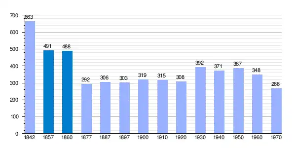 | Gráfica de evolución demográfica de Pruit[2] entre 1842 y 1970 |