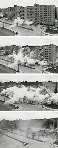 A las tres de la tarde del 16 de marzo de 1972,[3] menos de 20 años después de su construcción, el primero de los 33 gigantescos edificios fue demolido por el gobierno federal.[4] Los otros 32 restantes fueron derruidos en los siguientes dos años.
