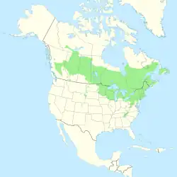Se puede encontrar a partir de la Isla de Terranova y al sur del Labrador, cruzando Canadá al oeste y hasta en la Columbia Británica y al sur de los Territorios del Noroeste. Además es muy común en Nueva Inglaterra y los Estados del los Lagos del Sur, pero no muy común en Pennsylvania, donde solo se encuentra esporádicamente en los Montes Apalaches al norte de Georgia (Estados Unidos) y al este de Tennessee. Grandes poblaciones del Cerezo Pin también se producen en las Montañas Rocosas, al sur de Colorado y el sureste de la Black Hills en Dakota del Sur.