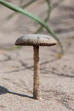 P. ammophila posee un aspecto variable, cambiando de color y forma durante su vida. Inicialmente posee forma de campana de color dorado o marrón claro, gradualmente el sombrero se aplana y oscurece, siendo de color marrón oscuro con una forma de taza al final de su vida.