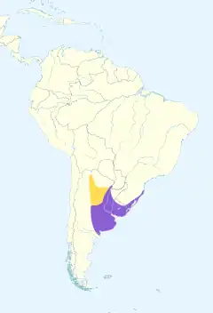 En América del Sur, se distribuye por Argentina en las provincias de Córdoba, San Luis, Chaco, Corrientes, Entre Ríos, Santa Fe y Buenos Aires; ocasionalmente, se registró en Jujuy, Santiago del Estero y en Tucumán. En Brasil, se distribuye por Santa Catarina y Río Grande do Sul. Se encuentra, además, por el Uruguay.