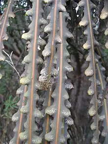 ![]() Árbol adulto con unas pocas remanentes hojas juveniles. | ||