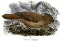 - Reichenbach, H.G.L. (1853). «Icones ad synopsin avium no.10. Scansoriae». Handbuch der speciellen Ornithologie (en alemán). i–ii, 145–218. Dresden y Leipzig: Expedition Vollständigsten Naturgeschichte. Homorus lophotes, primera citación p.146; descripción original p.172; Ilustración pl.DXXV fig.3628. Disponible en Biodiversitas Heritage Library. doi:10.5962/bhl.title.102901.