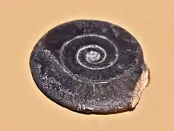![]() Conchas fósiles de Psiloceras planorbis de Alemania , en exhibición en la Galerie de paléontologie et d'anatomie comparée en París | ||