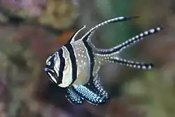 El cardenal de Banggai (Pterapogon kauderni) es un pez cardenal, de la familia de los Apogonidae.