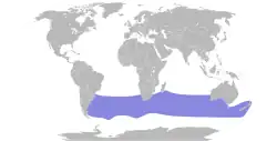 Se encuentra en las aguas temperadas e subantárticas del sur del océano Atlántico, sur del Índico y occidente del Pacífico. Durante el período reproductivo permanece en las islas en el hemisferio sur, como Tristán de Acuña, isla de Gough, islas del Príncipe Eduardo, islas Crozet e islas Antípodas. Se dispersa fuera del período reproductivo, alcanzando Brasil, Uruguay, Argentina sur de África, Australia y Nueva Zelandia y a veces incluso hasta Jordania, Israel, Sri Lanka y otros lugares. Ha sido registrada en la Antártida.[1]