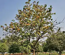 Es lo más probable que crezca de forma natural a lo largo de las riberas boscosas. Las mejores condiciones de crecimiento son un clima seco y luego estacionalmente húmedo, con acceso a la plena luz del sol. Es una angiosperma que tradicionalmente se incluye en la familia Sterculiaceae; sin embargo, se agrupa en la familia Malvaceae ampliada. Es relativamente un gran árbol, que crece hasta los treinta metros de altura. Mayormente es plantado como árbol ornamental o de sombra, las hojas, las flores, y la madera del árbol puede servir a una variedad de funciones.