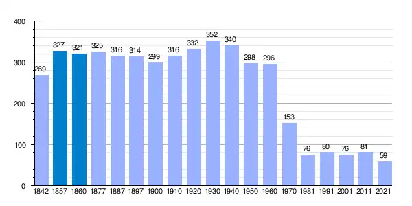 | Gráfica de evolución demográfica de Puebla de Valles[4] entre 1842 y 2021 |
