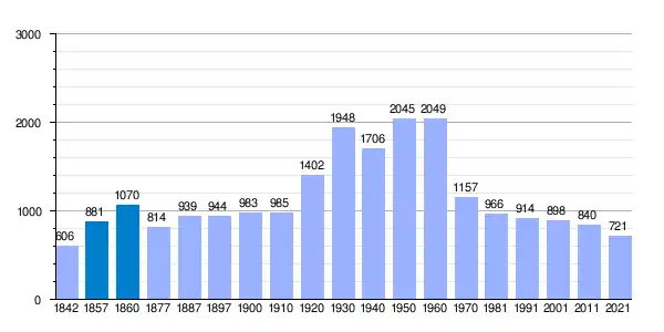 | Gráfica de evolución demográfica de Puebla de la Reina[4] entre 1842 y 2021 |