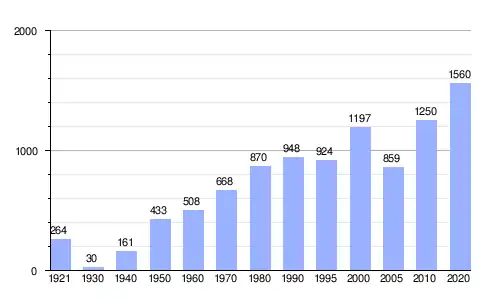 En 2020 registró una población de 1560 personas, lo que corresponde al 1.58 % de la población municipal.[1][7] De los cuales 756 son hombres y 804 son mujeres.[1][7]